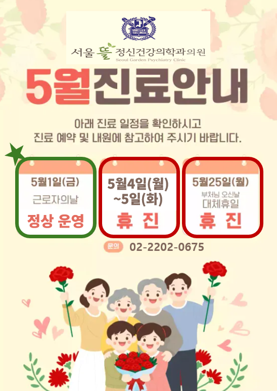 서울뜰 정신건강의학과의 진료 과목을 안내드립니다.